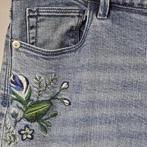 J. Jill Denim Authentic Fit Cropped Embroidered Blue Flowers Jeans Sz 14 Stretch