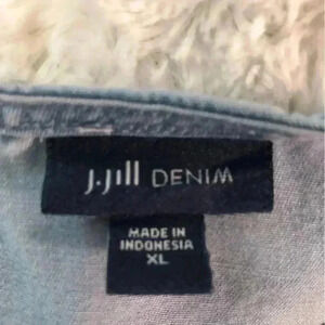 J Jill Denim Chambray Blouse XL Double Bell Sleeves Button Back 3/4 sleeves