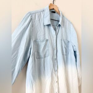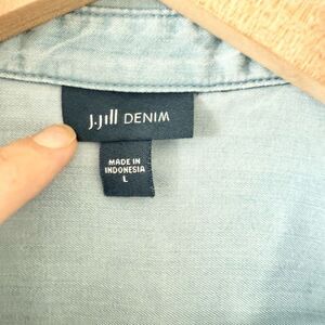 J. Jill Denim Chambray Button Down in Blue White Ombre - Size L