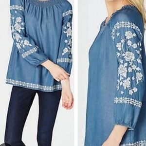 J. Jill Denim Embroidered Peasant Top