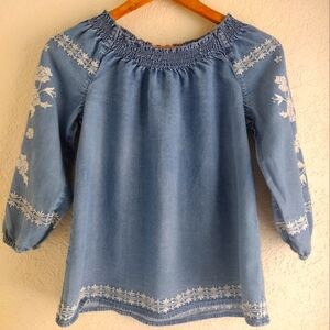 Women's J. Jill Denim Embroidered Peasant Top