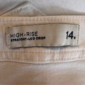 J. Jill Denim High-Rise Straight-Leg Cropped White Jeans Fringed Hem Size 14 EUC