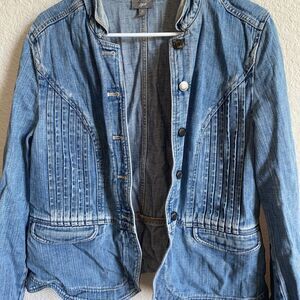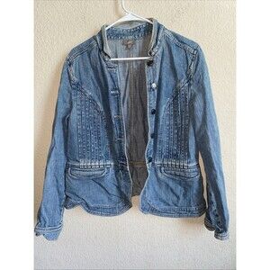 J Jill Denim Jean Jacket Light Wash Tuxedo Ruffle Women M Western Country Lagen