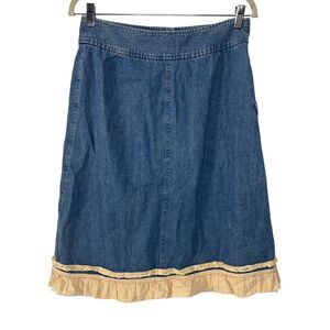 J. Jill Denim Jean Skirt Women 6 Petite Peasant Chambray Ruffled Y2K Renaissance