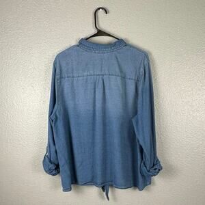 J Jill Denim Size XL Blue Long Sleeve Button Up Shirt Cotton Shirt Tie Knot