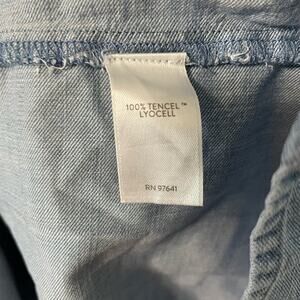 J. Jill Denim Top L Chambray Floral Button Front Collared Batwing Sleeve Casual