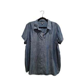 J Jill Denim Top Women's Pullover Chambray Tunic Sz M Short Sleeve Comfort Blue