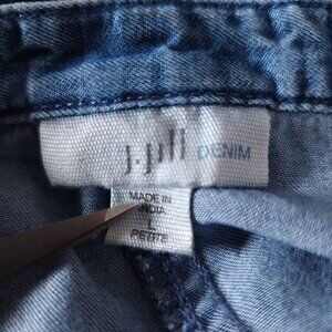 J Jill Denim Womens Large Petite Chambray Tunic Dress Blue Check Minimal Cottagecore