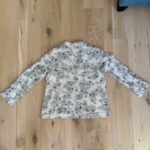 J. Jill Desert Bloom Linen Rayon Blazer Flax Beige Green Floral SZ S