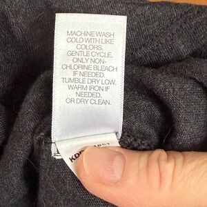 Soft, stretchy A-line dress with dipped hem detail. Pockets, scoop neck, seam detail above waist. Excellent, gently pre-owned condition. No known flaws. See photos for additional details. Color best represented by close up shot of neckline. Not bluish gray like it looks in some photos!