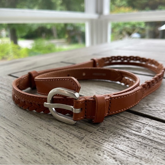 J. Jill Double Brown Double Braided Leather Belt with Silver Buckle Size M/L