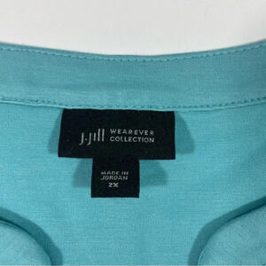 J Jill Double Face Jersey Split Neck Top Blue Size 2X