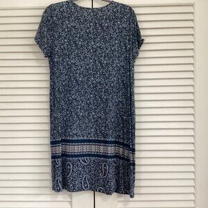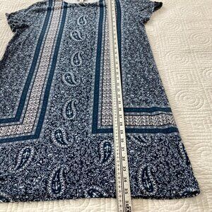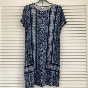 J Jill Dress Blue Floral/Paisley Dress Size M Short Sleeve Stretch Casual Cottag