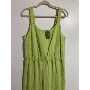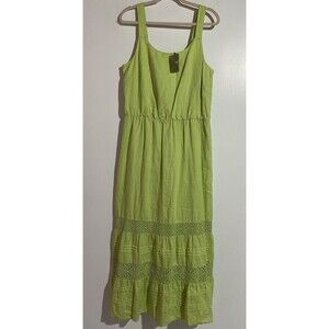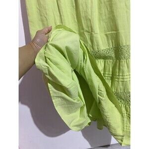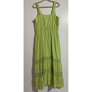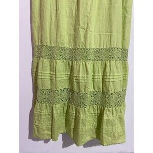 J Jill Dress LT Celery Green Linen Maxi Tiered Crochet Boho Cottagecore Peasant