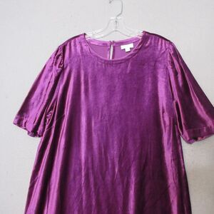 J Jill Dress Women Large Purple Velvet Short Sleeve Shift Lagenlook Party NWT