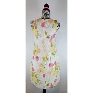 J Jill Dress Linen Sand Beige Floral 100% Linen Dress Womens Sz 8P