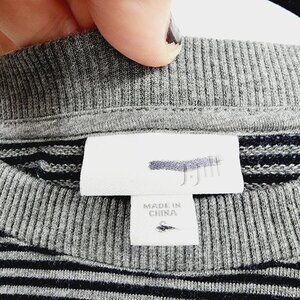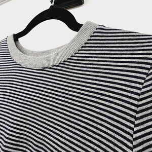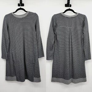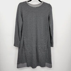 J. Jill Dress Pleated Back Grey/Black Stripe Crew Neck Casual Dress w/ Pockets S