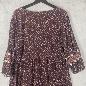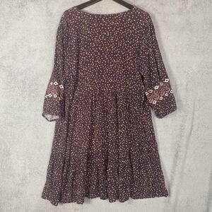 J Jill Dress Women 2X Boho Embroidered Babydoll Peasant Midi Purple Floral Fall