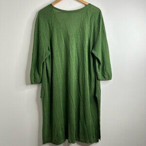 J Jill Dress Womens Large Green Linen Blend 3/4 Sleeve V Neck Pullover