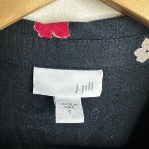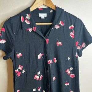 J Jill Dress Womens Size S Black Dark Floral Button Up Short Sleeve Pockets