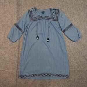 J. Jill Dress Womens Small Denim Chambray Embroidered Western Knee Length Blue