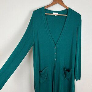J. Jill Duster Cardigan Sweater Womens Petite Large Green V-Neck 3 Button Ribbed