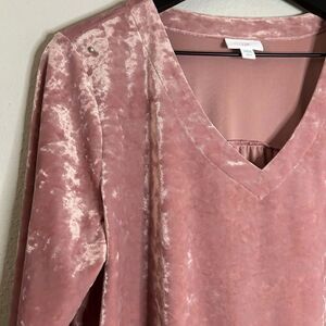 J. Jill Dusty Pink Velour V Neck Long Sleeve Size L Petite