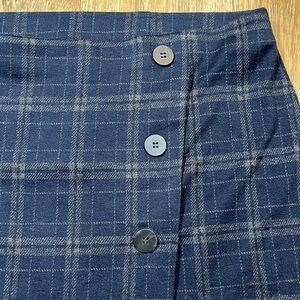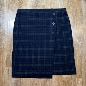 J. Jill EUC Skirt Navy Plaid Faux Wrap Pencil Pull On Stretch Large Ponte Knit