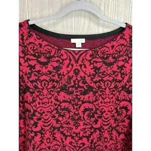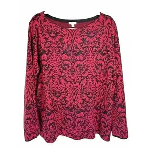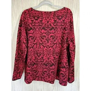 J. Jill Top Size Large Damask Embellished Rhinestone Beaded Knit Sweater Holiday Red Black. Excellent pre-owned condition with no flaws found. Midweight. Measurements in photos. Fast shipping!