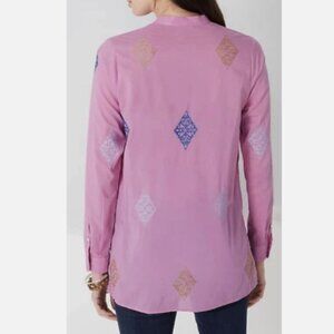 J.Jill Embroidered Cotton Tunic – Medium Pink w/Tan, Blue & Silver Embroidery