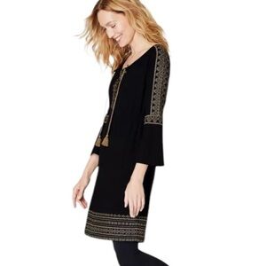 J. Jill Embroidered Cotton Blend Boho Knit Peasant Sheath Dress Black Size S