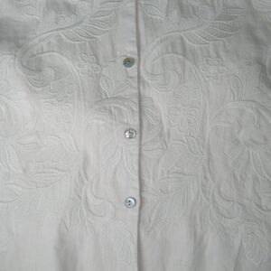 J Jill Embroidered Linen Shirt Mother of Pearl Buttons Medium P Ivory Coastal