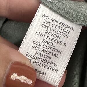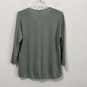 J Jill Embroidered Shirt Top S Sage Green V Neck 3/4 Sleeve Boho Casual Floral