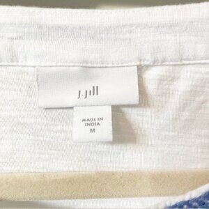 J. Jill Embroidered V-Neck Tunic Length Tank, White with Blue Trim, Size Medium