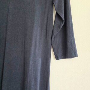 J. Jill navy blue shift dress with beautifully embroidered hem line with terracotta and turquoise accents. 3/4 length sleeves