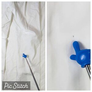 Pre-owned, good condition. I was told they had never been worn. However, there is a very small mark on the leg which I pointed out in the photos. I have not tried a stain remover on them.