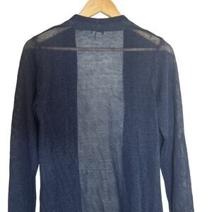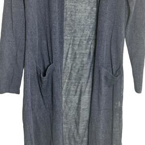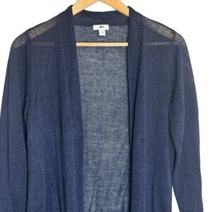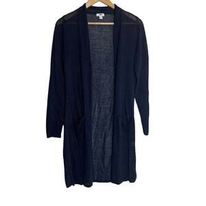 J Jill Eve Open Front Linen Blend Cardigan Sweater Size SMALL Navy Blue Long