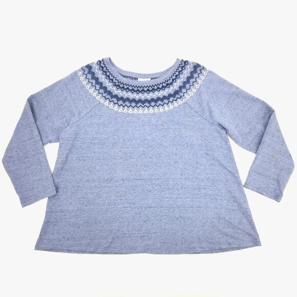 J Jill Fair Isle Embroidery Long Sleeve Top Sweatshirt Women Extra Large XL Blue