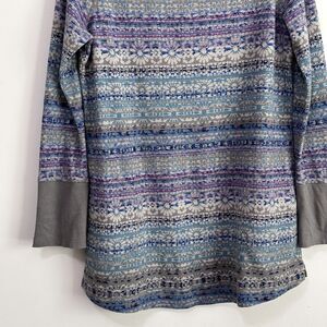 J Jill Fair Isle Long Sleeve Tunic Top XS Pockets Thermal Waffle Knit Blue Gray