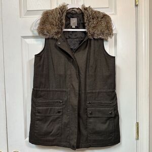 J Jill Faux Fur Collar Utility Vest Brown XS