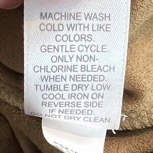 Brand new with tags. Petite medium. Warm acorn brown faux suede. Fixed wrap waistband, lined, knee length.