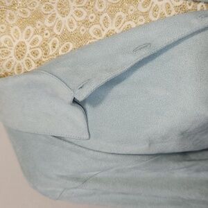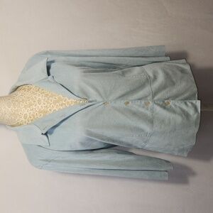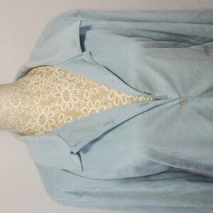 J Jill Faux Suede Powder Blue Button Down Long Sleeve Collared Top Size LP