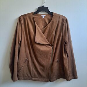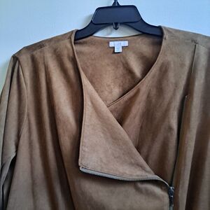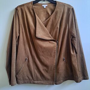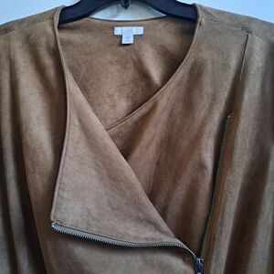 J. Jill Faux Suede Zip Up Moto Jacket Camel Brown Women's Size 2X