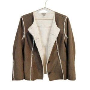 J. Jill Faux Suede fur Button Front Coat Jacket Brown Cream