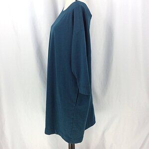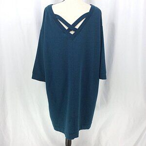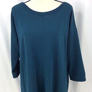 J Jill Fit Dress Womens Size 2X Teal Sweatshirt Pencil Back V-Neck Long Sleeve