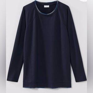 All the good details: colorful ombré embroidery at the neckline and hem transforms a supersoft sweatshirt into a textural work of art.