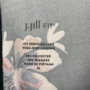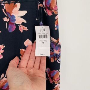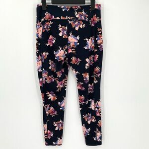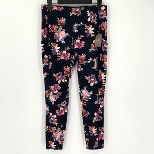 J Jill Fit High Rise Performance Leggings Pockets Floral Navy Blue Women Medium