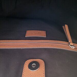 • Detachable zippered clutch/ purse (8-1/2”’ x 6”) on 12” leather strap