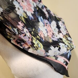 J Jill Floral Black and Pink Light Weigth Women's Squared Large Scarf