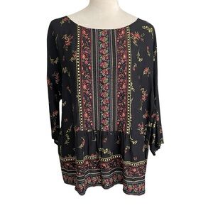#JJill #BohoTop #FloralBlouse #TunicTop #WomensFashion #BohoStyle #PeasantBlouse #FallWardrobe #LayeringTop #CasualChic #TunicBlouse #BlackFloral #ComfyStyle #ModernBoho #SizeMedium